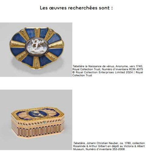 Cinq tabatières retrouvées après le bracage du musée Cognacq-Jay