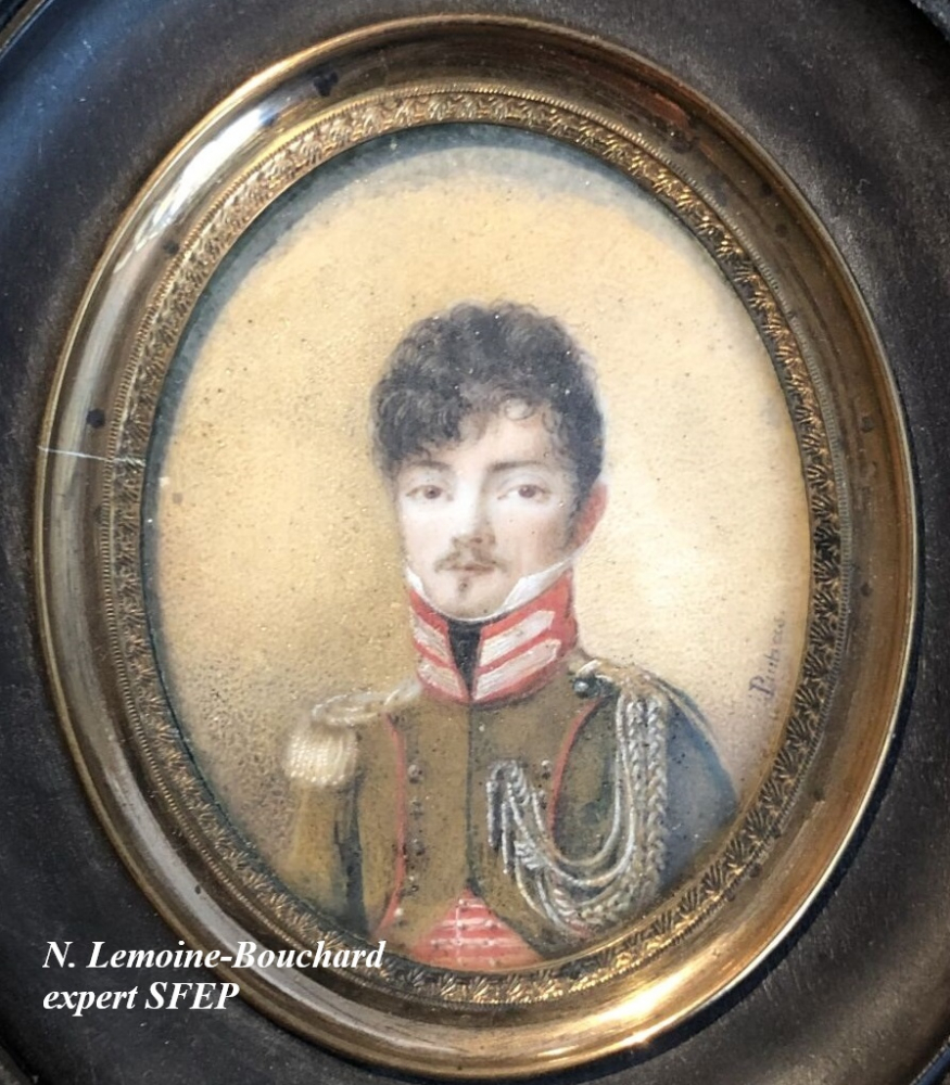 Vente en préparation: Mobilier, objets d'art, miniatures, notamment par Salomon PINHAS (Bayreuth, 1759-Cassel, 1837), Portrait d’un adjudant-major des gardes d’honneur, époque Empire (repr. ci-contre).