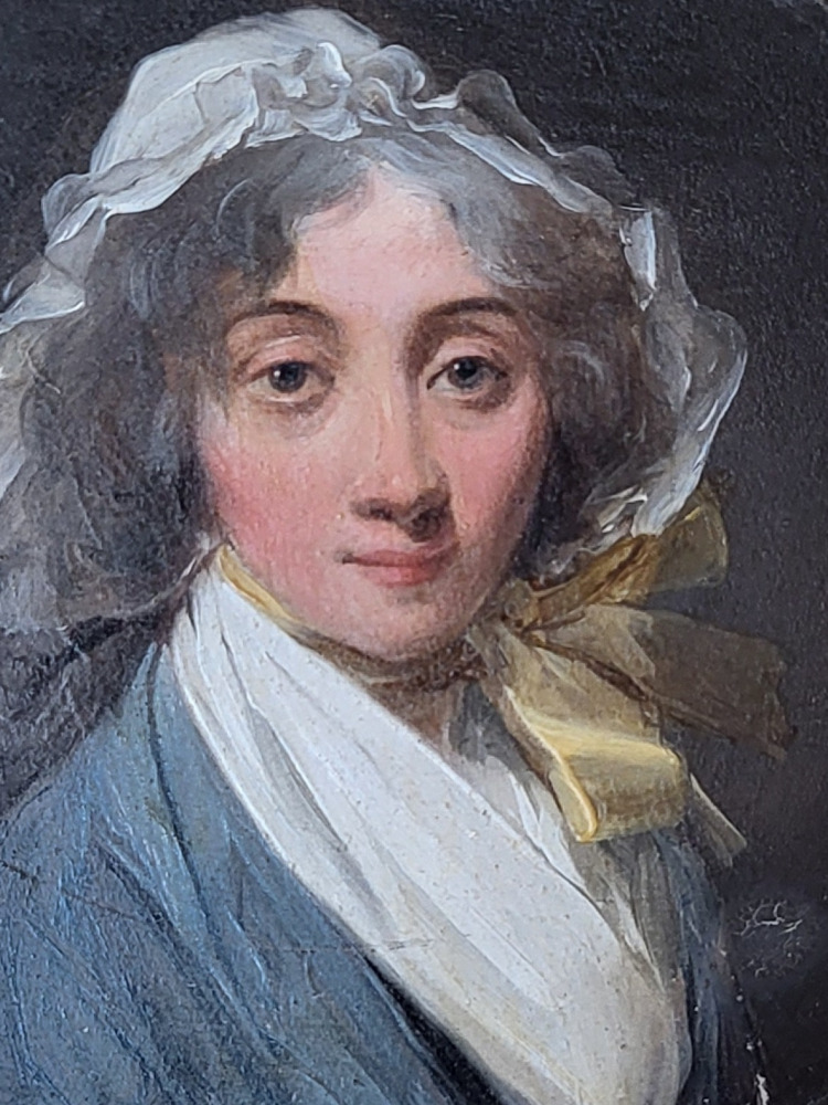 Boilly fut prolifique dans le format standardisé qu’il avait conçu pour ses petits portraits sur toile. A l’inverse, ses formats miniatures sont fortrares: on n’en connait actuellement que 16 dans cette technique surmétal, en dehors de celle-ci. L’artiste a aussi expérimenté d’autres techniques en miniature, en fixé sous verre, sur papier, arton, porcelaine,l à encore en petit nombre
