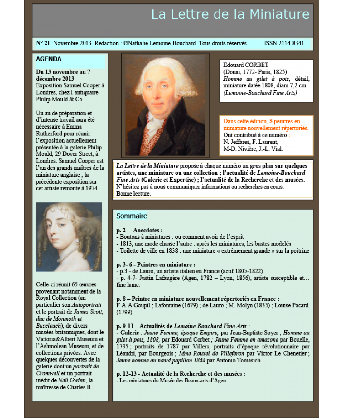 Accueil > Lettre de la Miniature > Lettre de la miniature n° 21
